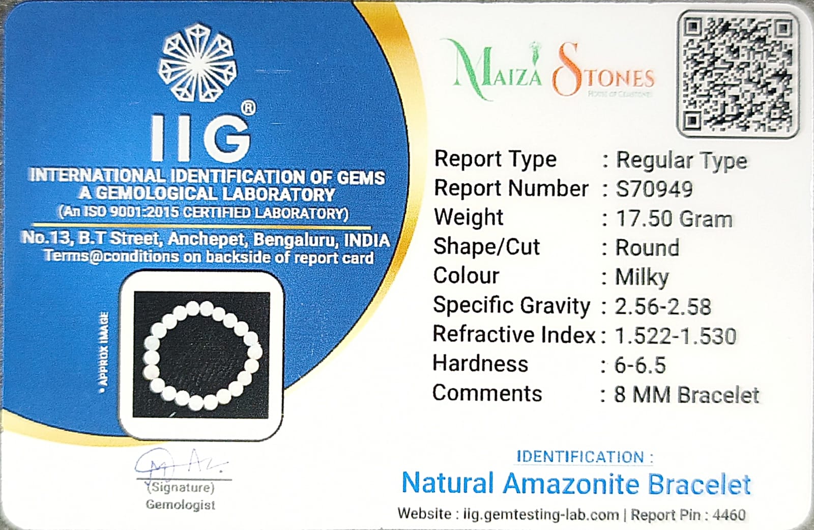 - Type : Natural Amazonite bracelet