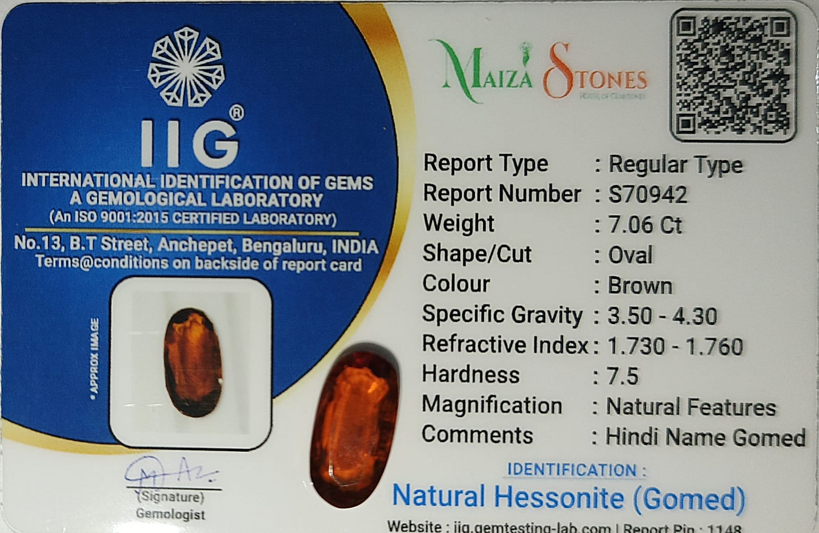 | NATURAL | Hessonite (Gomed) | |