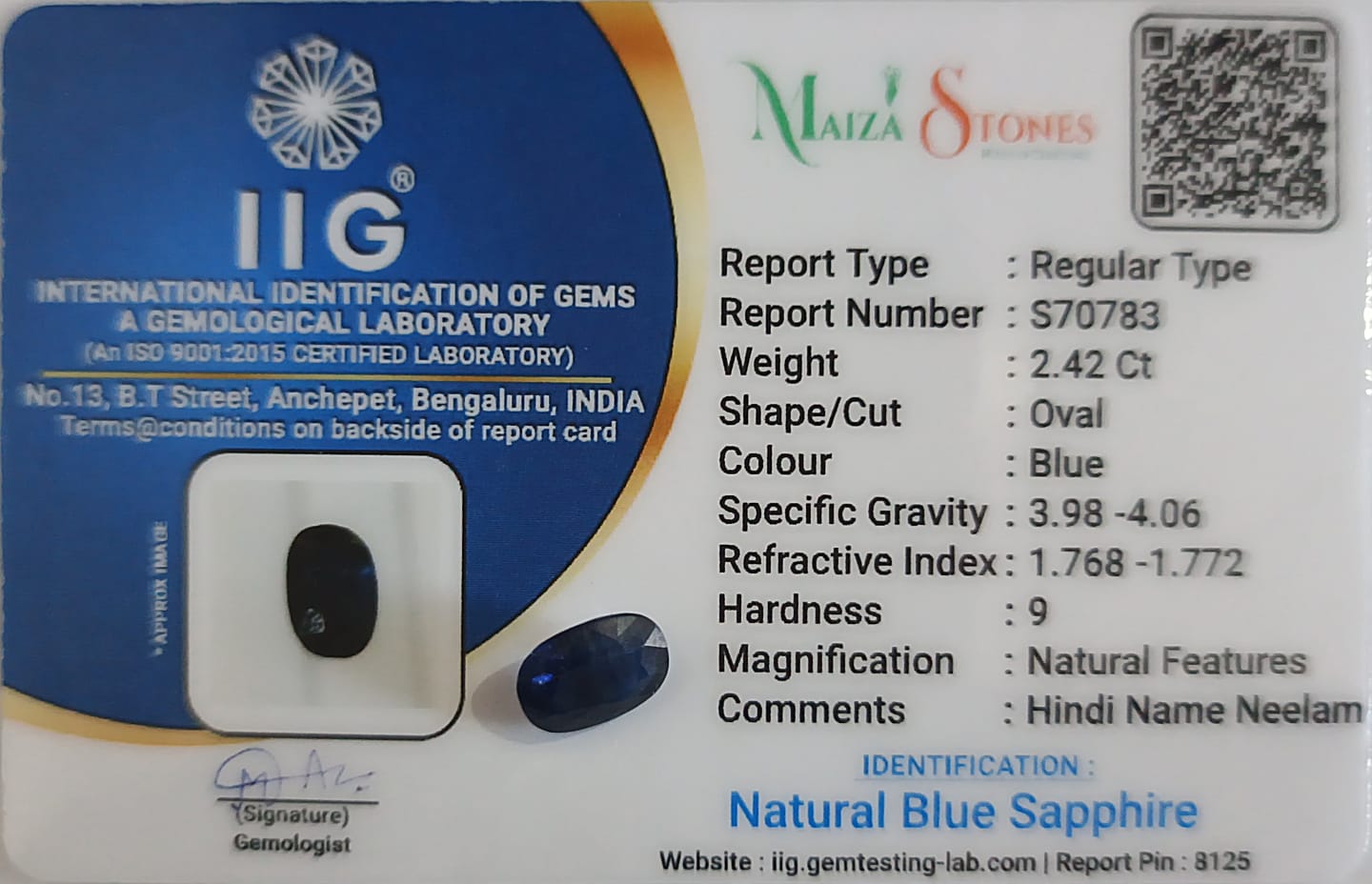 - Type : Natural Blue Sapphire
