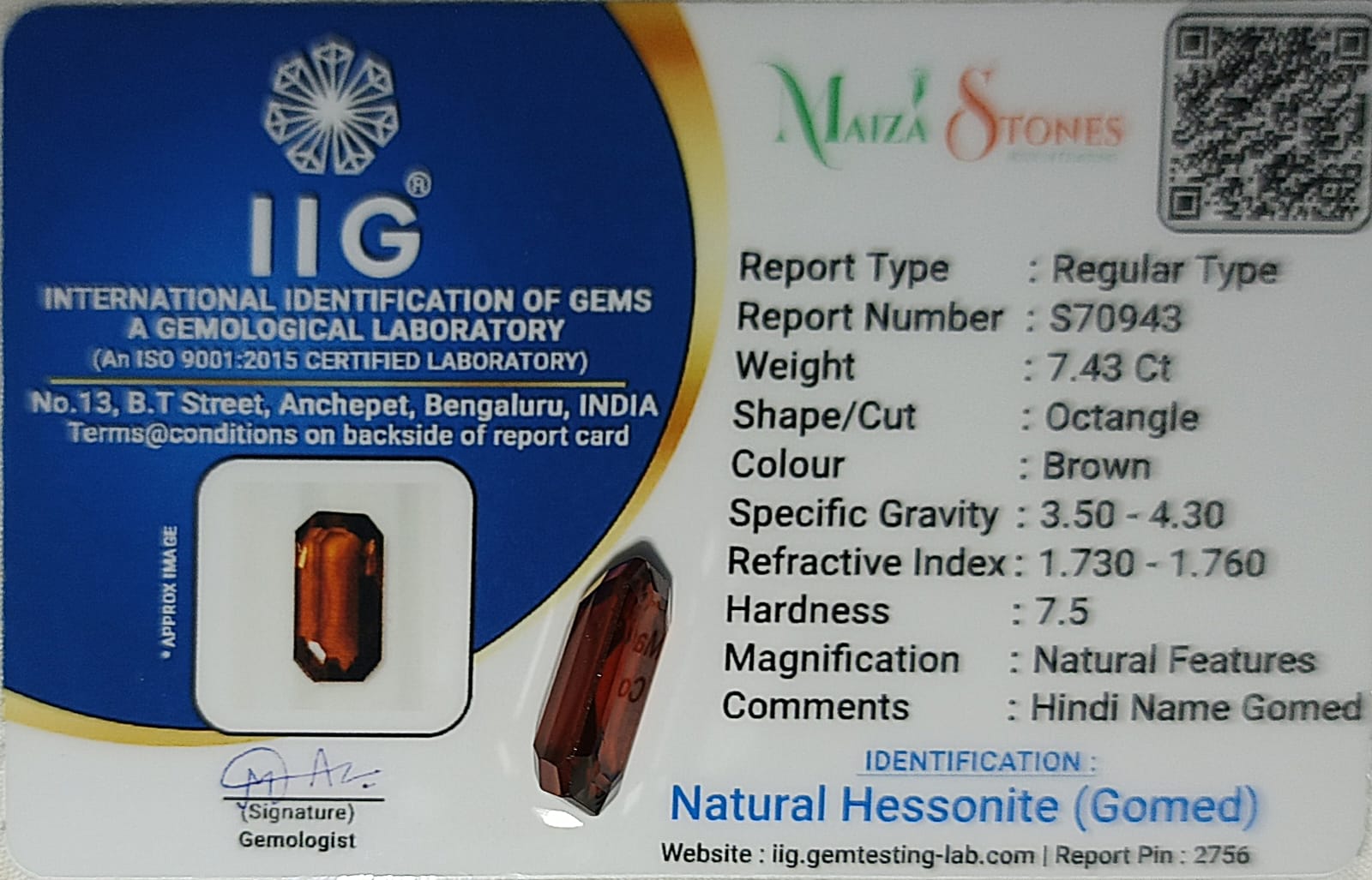 | NATURAL | Hessonite (Gomed) | |