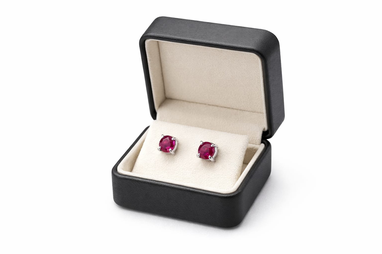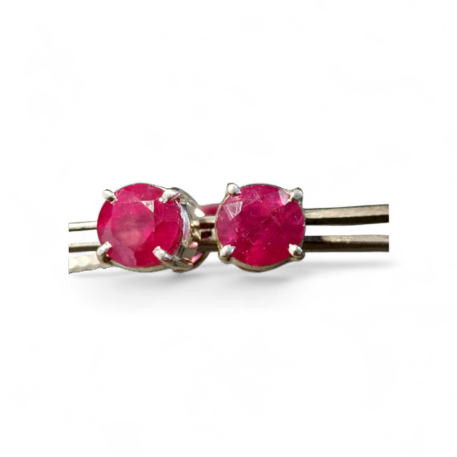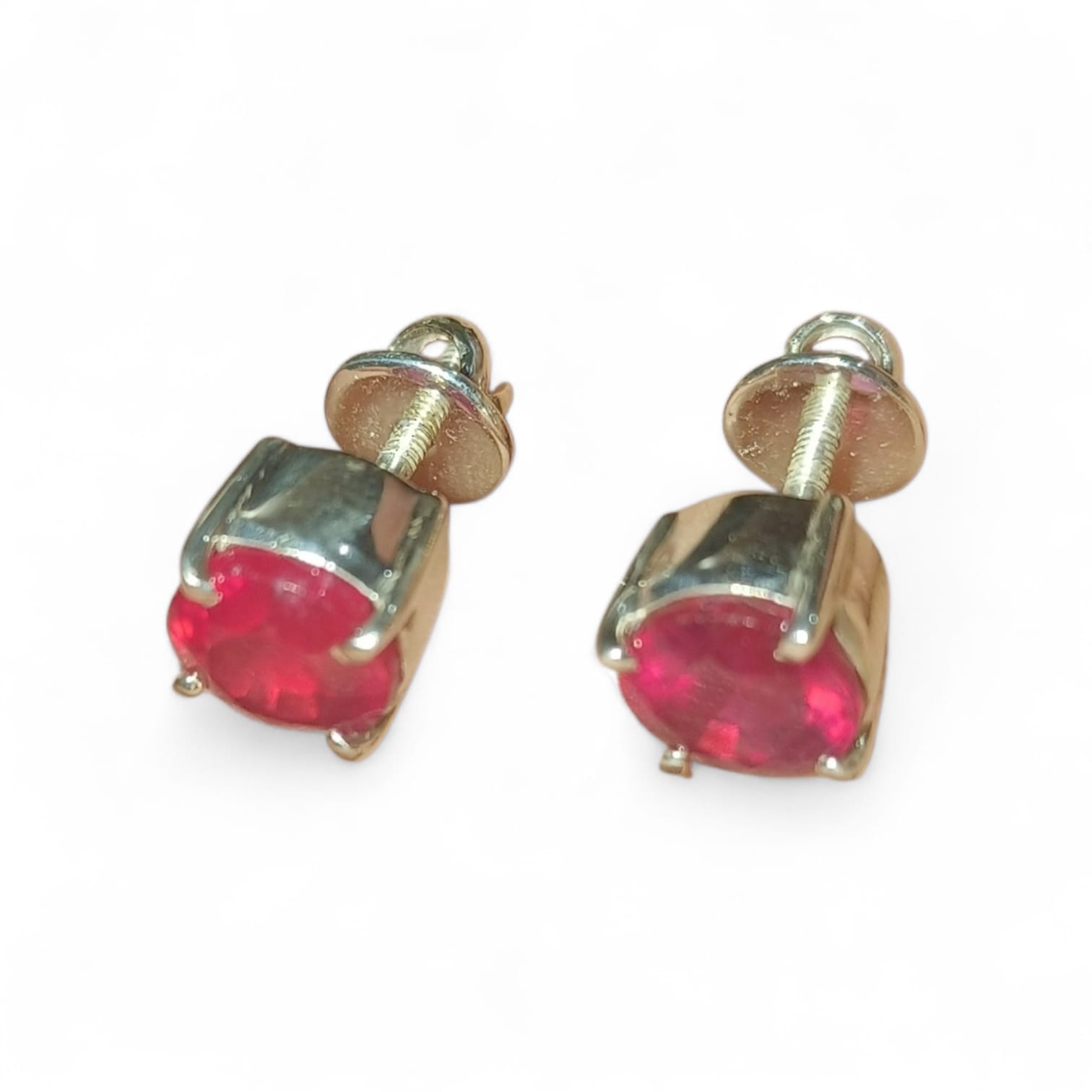 - Natural Ruby Gemstones Stud Earrings Set in Sterling Silver with Four – Prong Setting