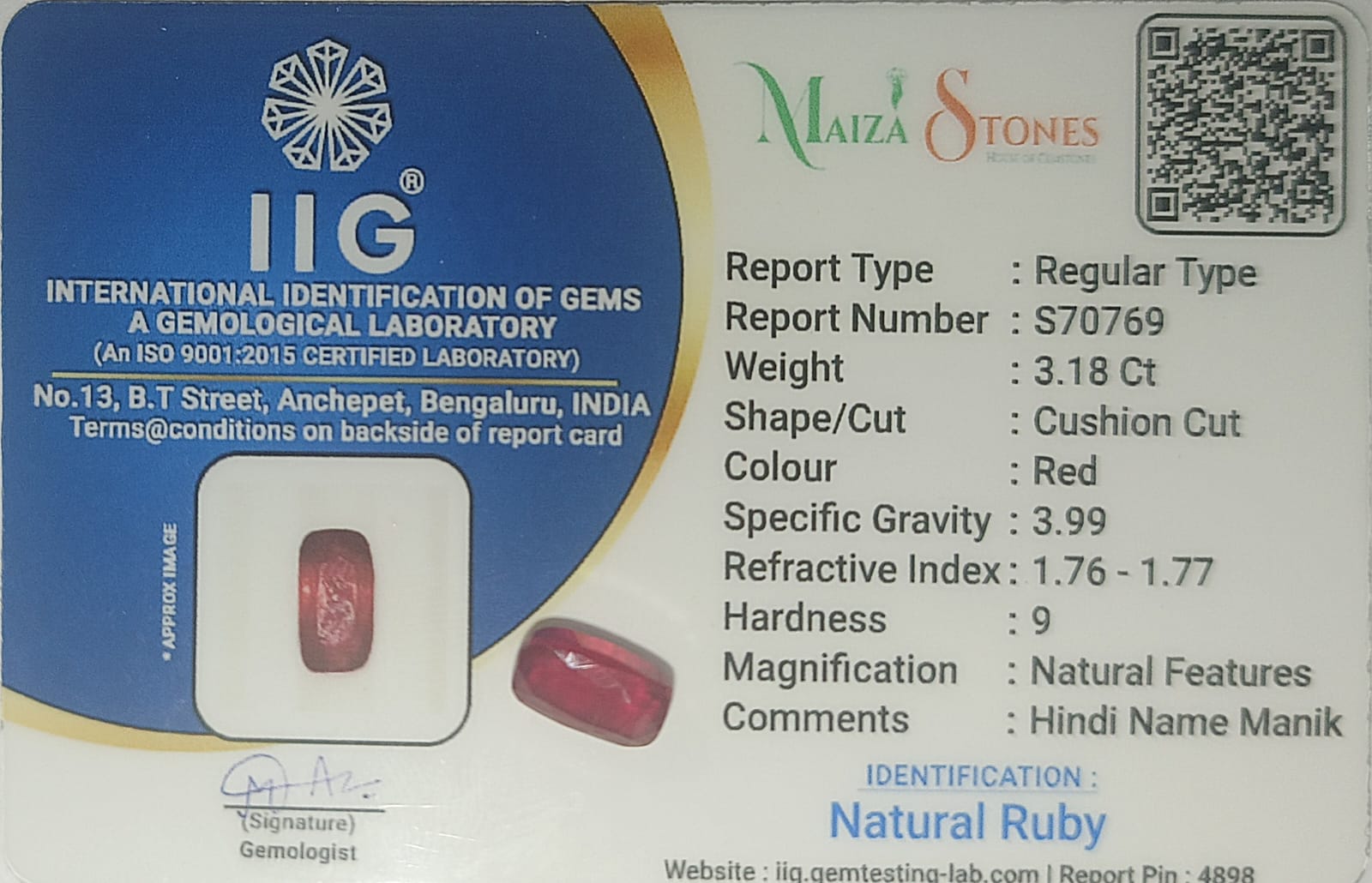 2. WEIGHT :3.18 CT