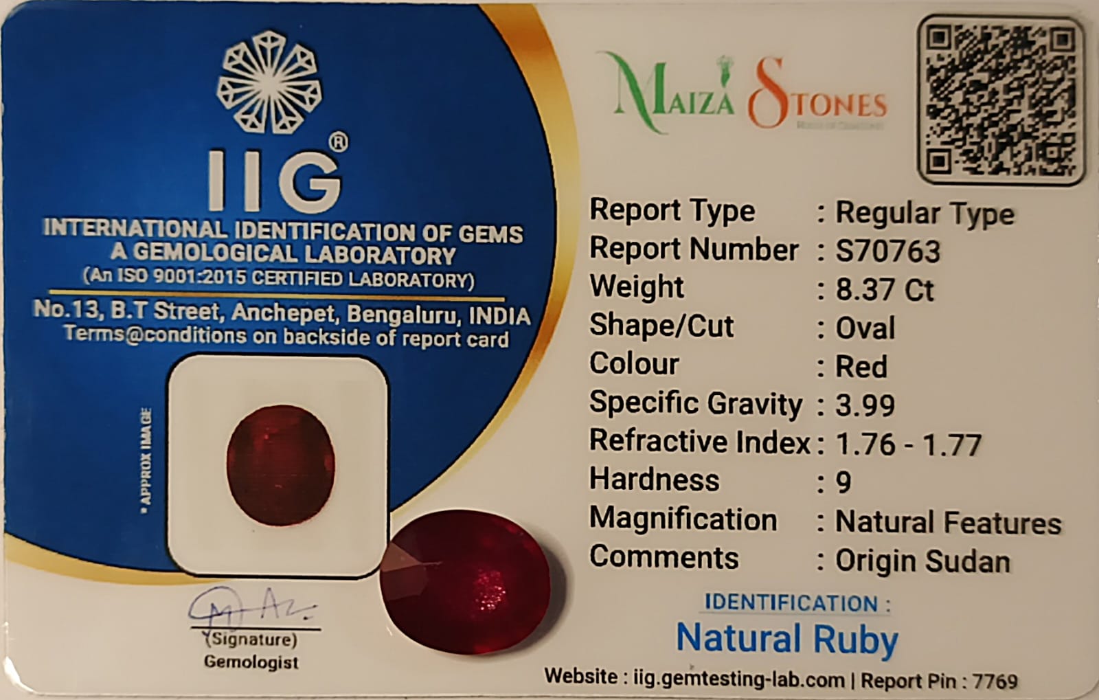| WEIGHT | 8.37 Carats |