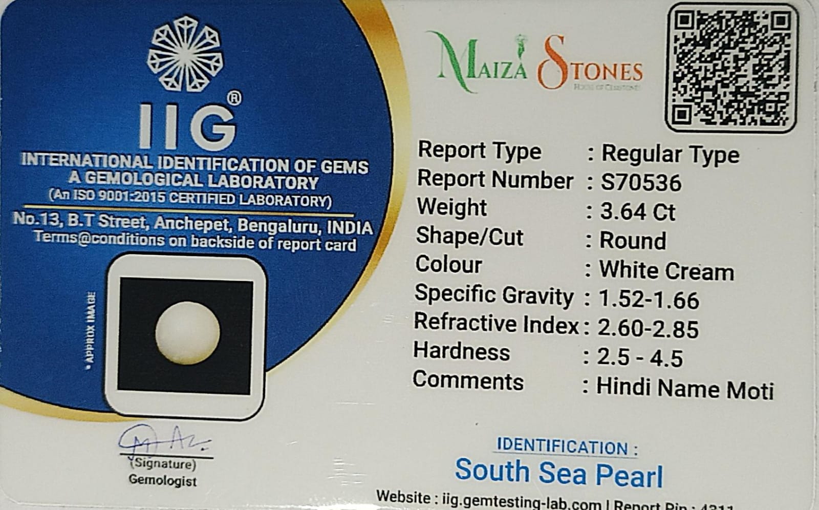 - Pearl Price Per Carat : 3.65×375=1365/rs