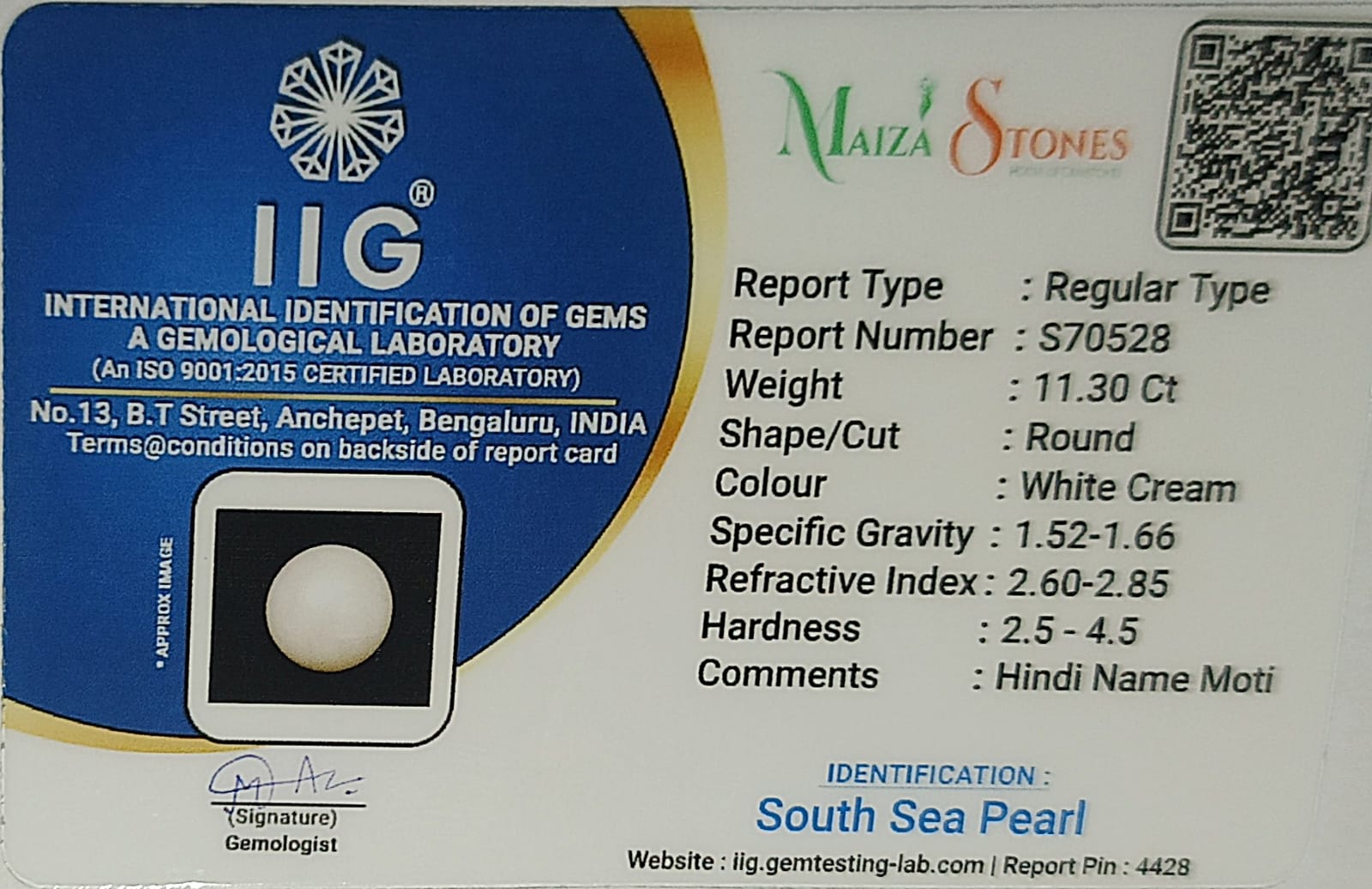 - Pearl Price Per Carat : 11.30ct×250=2825/rs