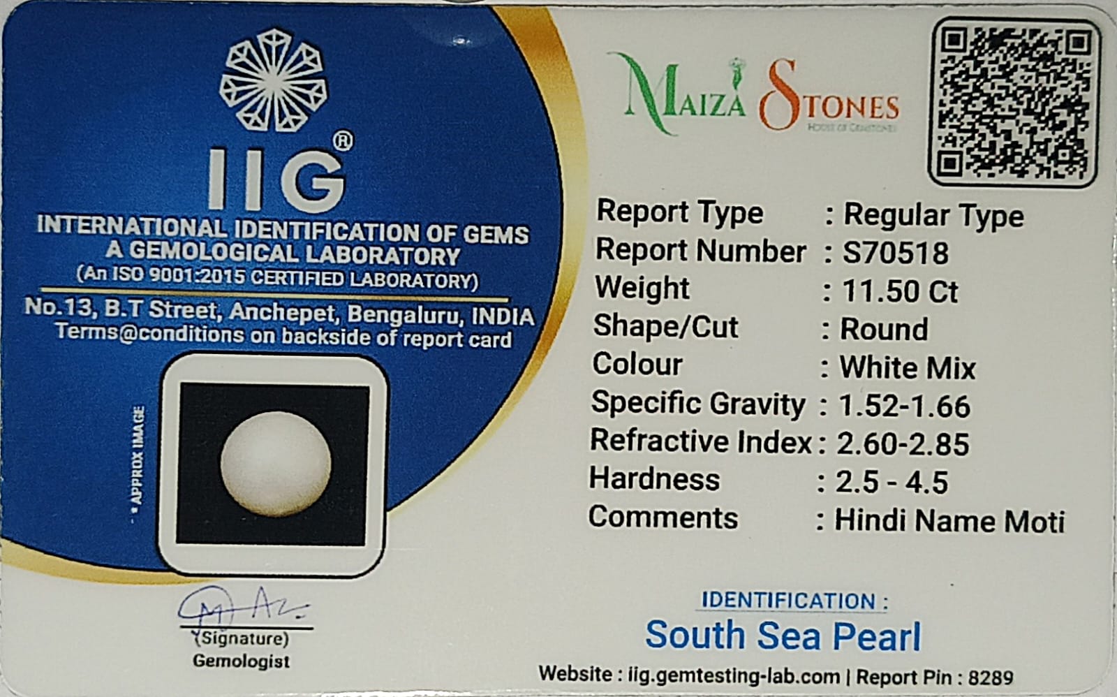 | WEIGHT | 11.50 Carats |