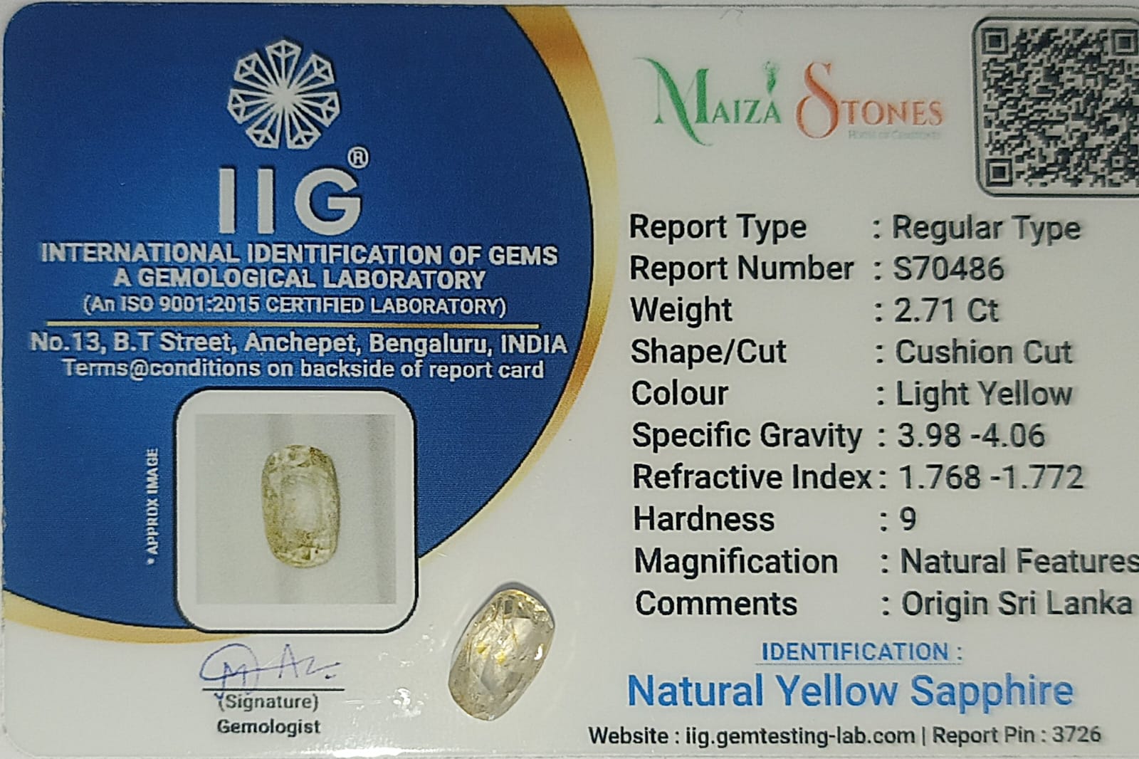 - Type : Natural Yellow Sapphire