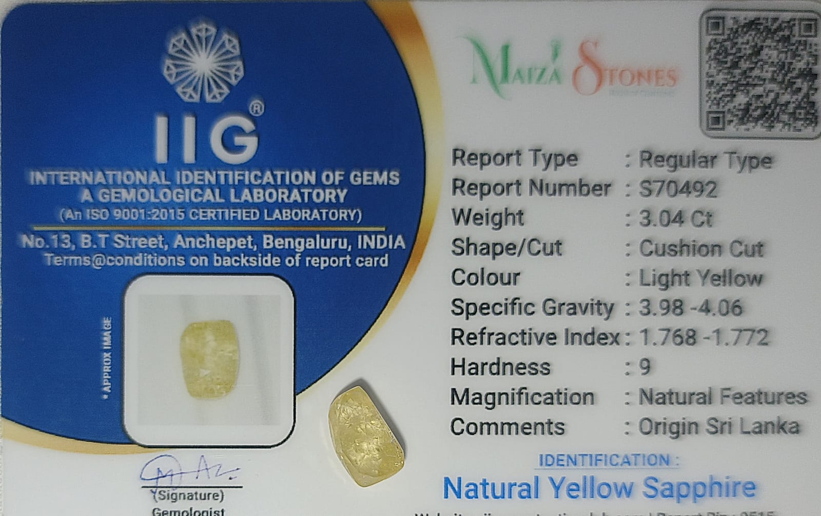 - Type : Natural Yellow Sapphire